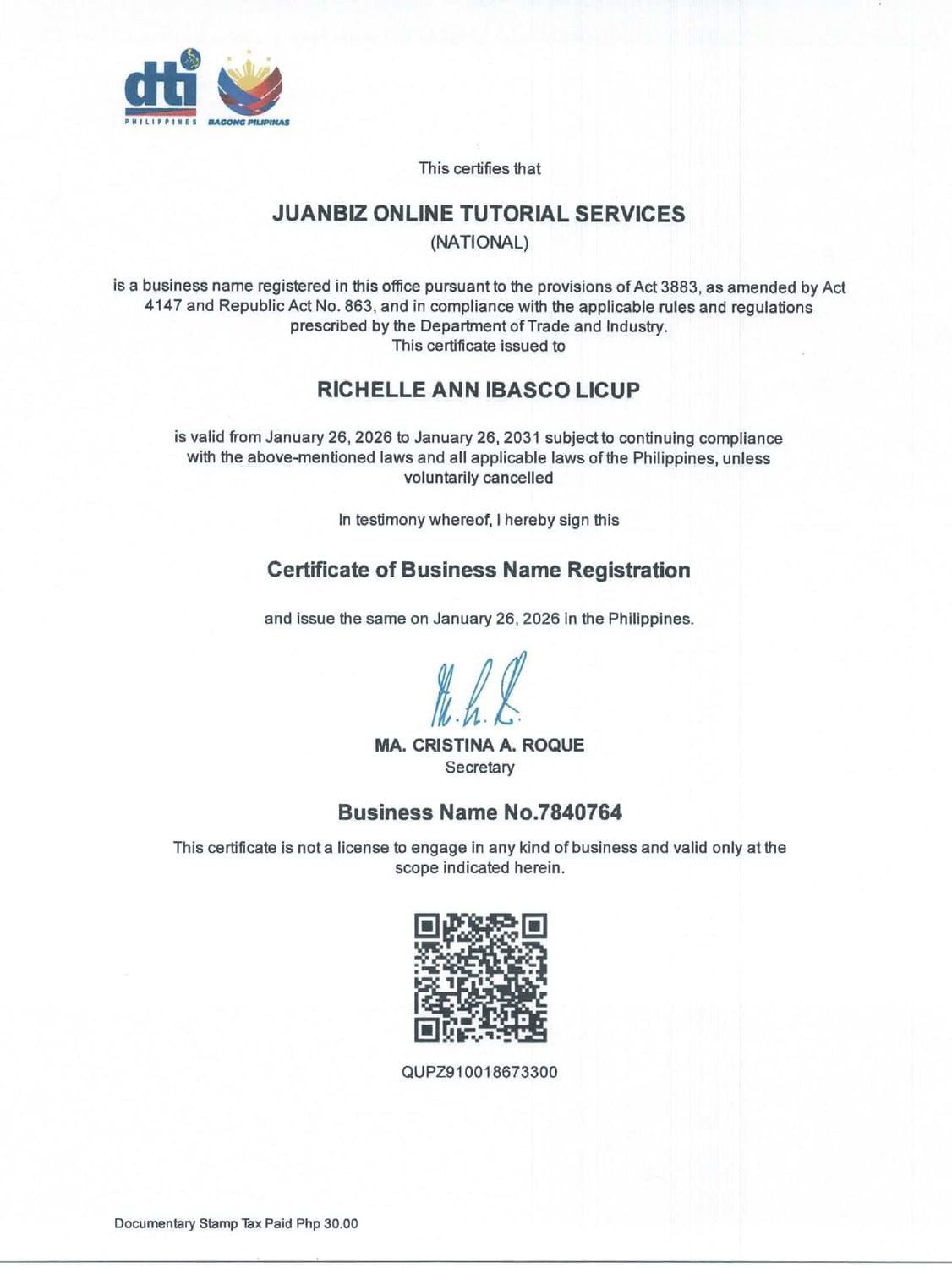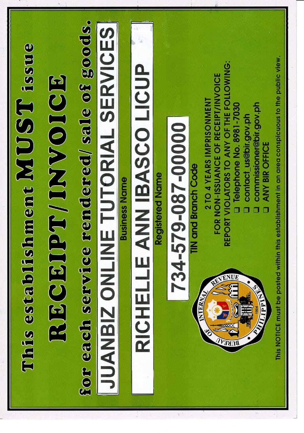 Business Name: JUANBIZ ONLINE TUTORIAL SERVICES